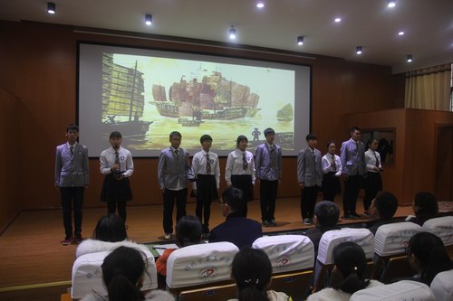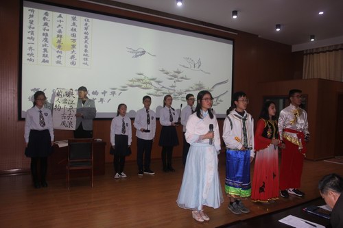 朗诵比赛中高一年级的《我的中国梦》《少年中华》《青春中国》《朗诵者之歌》等8个节目分别先后登台展示。作品或呼唤,或壮志,或激昂,或坚强,无不感动着在场的每一位师生。