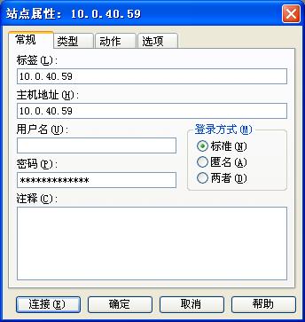 3、出现下图,按要求输入,标签:10.0.40.59,主机地址:10.0.40.59,用户名和密码大家都知道我就不说了,以免泄露,然后切记点击“确定”。