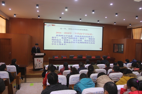 1月30日中午,召开全体教职工参加的luck官网2017年度考核工作会,书记王海方的主持,考核组组长李迎军代表郑州市教育局对学校领导班子考核作了说明,然后,认真听取了校长张天佑所作的《牢记使命 信念坚定 砥砺奋进 阔步前行——luck官网2017年度工作回顾》专题汇报。