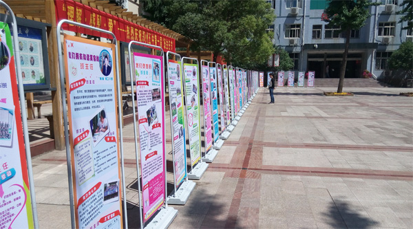 在开幕式结束后,老师和同学们驻足于校园广场的展示牌。每一个班主任展示牌的内容都由学生亲自策划和书写,每一个展示牌都是本班同学对自己班主任的祝福。