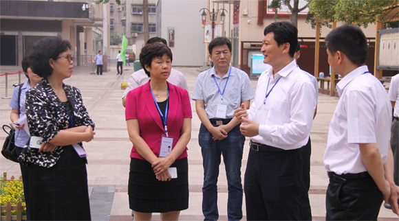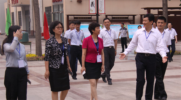校长张天佑向区管城区委、区政府、区人大、区政协领导介绍五中的情况