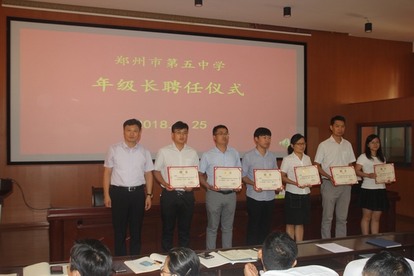 校长张天佑为年级长颁发聘书